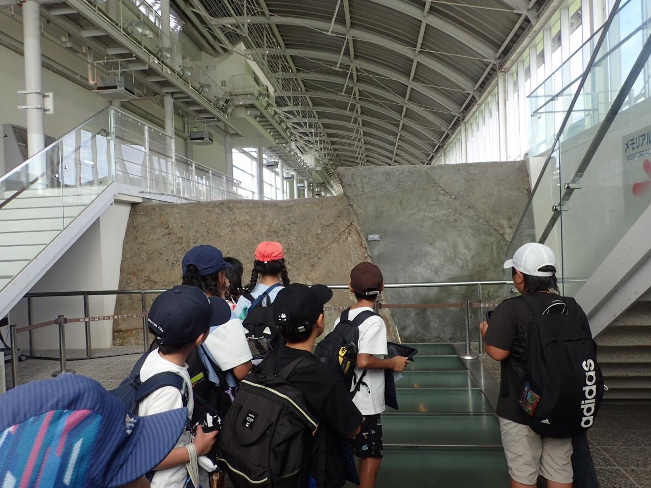 北淡震災記念公園では、まず支配人の方から地震当日の様子を話していただきました。その後、館内を見学し、保存されている実際の野島断層を見たり、地震断層が横切る民家の中へ入ったり、地震のすごさを目の当たりにしました。最後のほうには、これから起こりうる地震について考えている様子が子どもたちの話から伺えました。