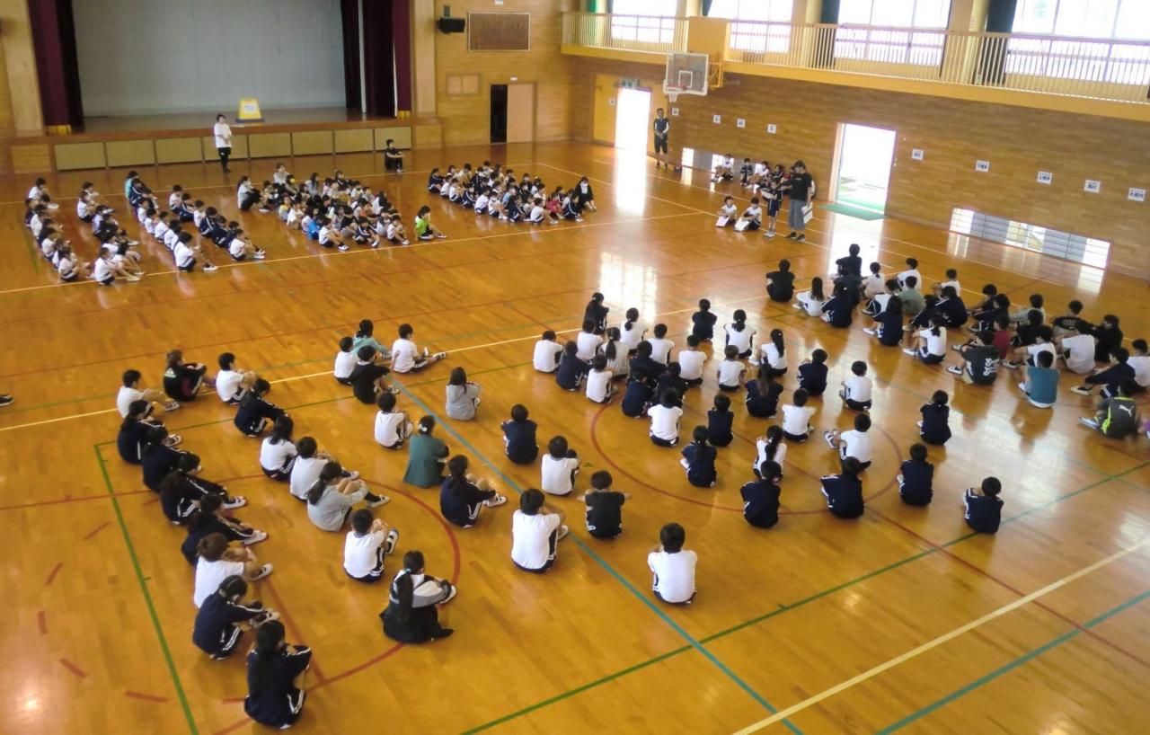 〇2年生・3年生は淡路人形座の出前講座を受けます。(体育館)