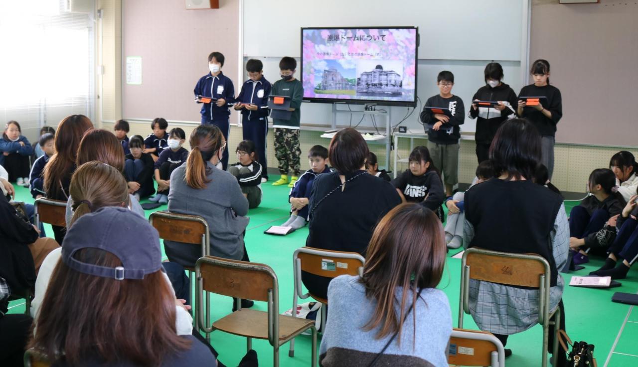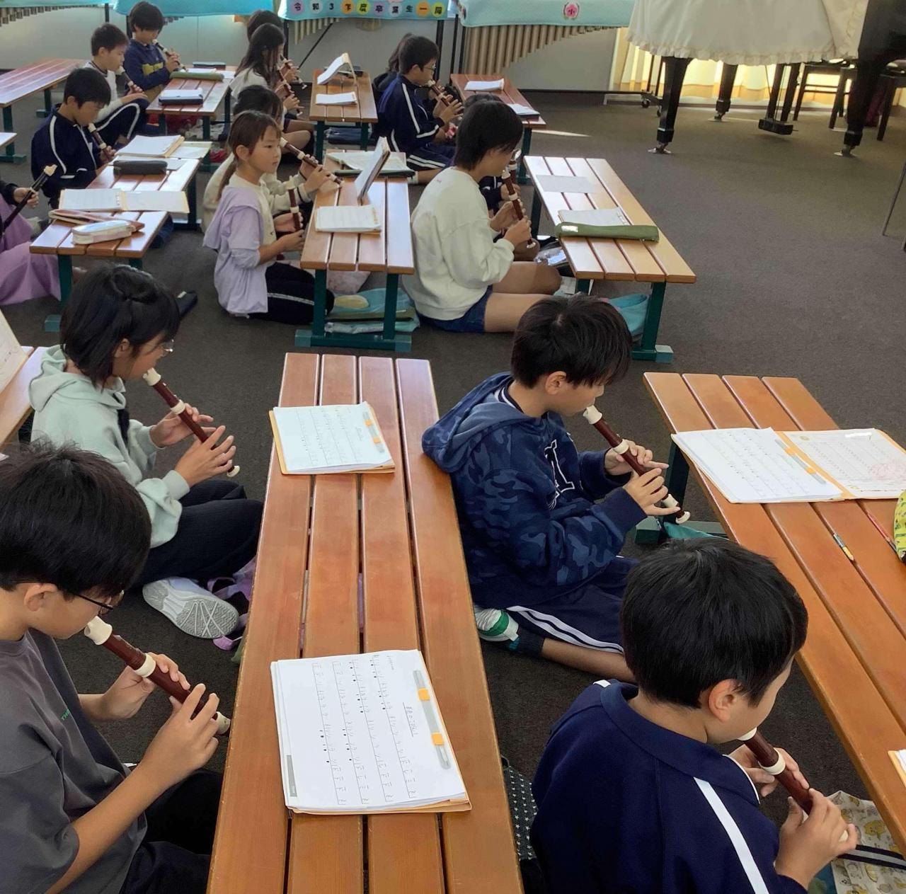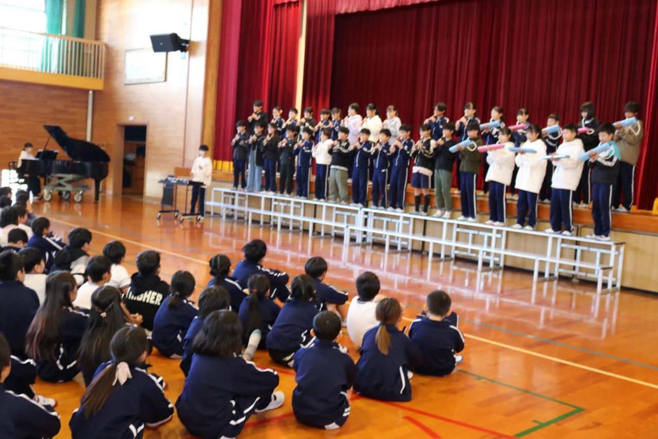 〇6年生が、明日13日の南あわじ市なかよし音楽会に向け、「世界の約束~ハウルの動く城より~」を児童集会でプレ演奏してくれました。