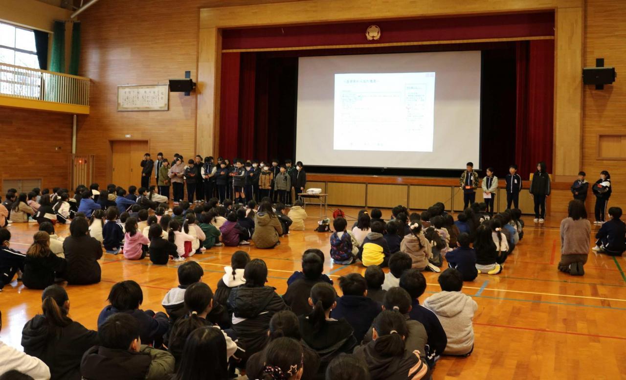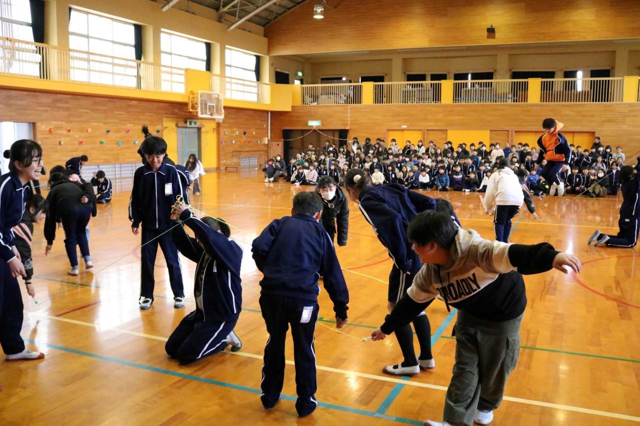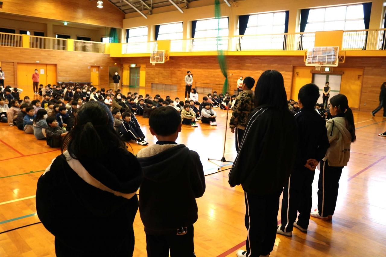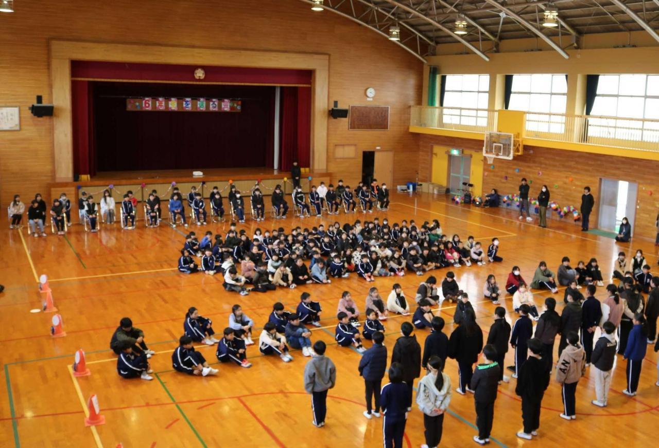学年末を迎えました。子どもたちは、しっかりと今の学年の締めくくりをして、次の学年への準備を進めていきます。児童会も、新役員(運営委員)が決まりました。そこで、最高学年となる現5年生と役員6名が来年度の意気込みを火曜日の児童集会で発表しました。また、昨日は、「6年生を送る会」が開催されました。1年生から3年生は卒業式には出席しないため、最後の全校集会行事でした。お世話になった6年生に感謝の気持ちを伝えたり、一緒にゲームを楽しんだりできました。集会の最後には、6年生がお礼のなわとびを披露してくれました。圧巻でした!在校生が目を凝らして食い入るように見ていた姿が印象的でした。6年生が作り上げてきた児童会が新年度もしっかり引き継がれていきます。みんなの学校を作っていこうという気運を感じました。楽しみです。
