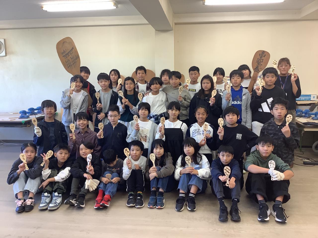 宮島に到着後、最初に杓子焼印体験を行い、小さなしゃもじの上に各自思い思いに鹿やもみじなどの焼印を押していきました。自分オリジナルの杓子を持って帰りますので、またゆっくり見てあげてください。