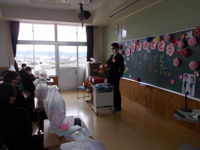 卒業生の皆さん、小学校では様々な体験をして多くの事を学んできたと思います。楽しいことやうれしいこと、感動したこと、時には、苦しいことや悲しいこともあったことでしょう。それらはすべて、皆さんにとっての生きる力に変わると信じています。自信をもって巣立ってください。そして、中学校に行っても多くの事を学びながら「なりたい自分」を見つけてください。なりたい自分を見つけた人は、信じられないほどのエネルギーが出て、夢や目標を叶える人になります。卒業生一人ひとりが自分の夢や目標に向かって大成されるよう、そして、淡路の未来を、日本の未来を切り開く人材に成長されるよう、教職員一同願っています。《中略》卒業生の皆さん、いつまでもお元気で。皆さんの 輝ける未来に、幸多かれとお祈りし、式辞といたします。 ありがとう さようなら