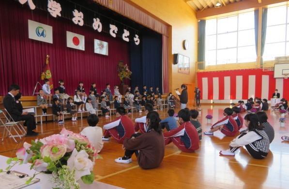八木小学校にかわいい1年生、32名が入学してきました。体育館で行った入学式では、6年生に手をつないでもらって入場し、ちょっぴり緊張した表情でひな壇に座りました。名前を呼ばれてしっかりと返事をしたり、式の間、上手に話を聞くことができたりととても立派な姿を見せてくれました。入学式でも「あいさつ」と「しっかりと話を聞くこと」のできる素敵な八木っ子になって、学校が楽しい場所になるようにしましょうと話しました。式には、5・6年生が参加したのですが、上級生らしい態度で1年生を見守ることできました。いよいよ今日から全校生179名そろっての新しい1年がスタートします。毎日が有意義で充実したものになるよう、みんなで力を合わせて頑張ってほしいと思います。