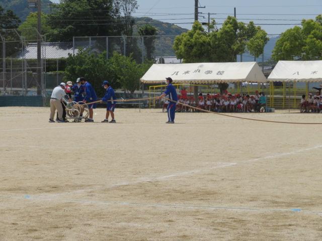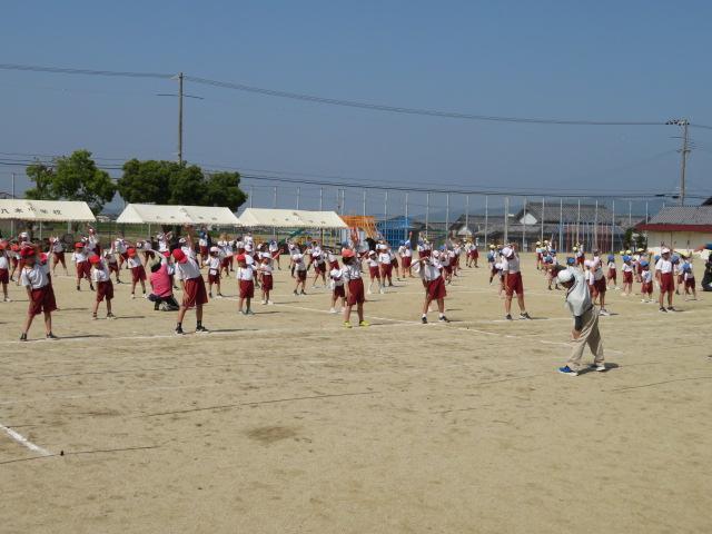 とても暑い中ではありましたが、朝から体育会の予行を行いました。プログラム1番のラジオ体操から順に、準備物や係の動きを確認しながら本番通りに練習をしました。トライやるに来ている中学生も児童テントの中で子どもたちの様子を見てくれたり、競技の準備などを手伝ってくれました。八木保育所の子どもたちも見に来て応援してくれていました。全校生みんながそれぞれめあてをもって、一生懸命頑張る姿が見られました。特に6年生は、リーダーとして自分の役割をしっかりと果していました。さらにより良いものにするため、あと2日、練習を頑張ります。今日は疲れていると思いますので、しっかりと体を休ませてほしいと思います。