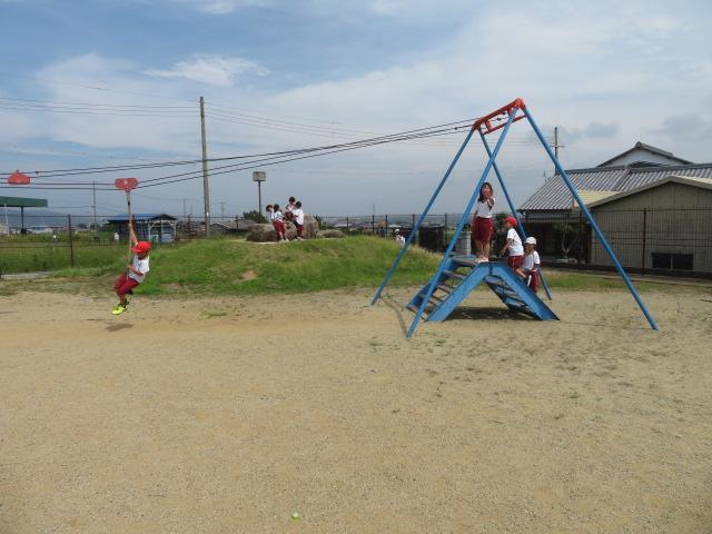 1年生の子どもたちが「八木コミュニティパーク(鳥井の公園)」へ出かけました。先日から計画しては雨で中止が2回も続き、ようやく出かけることができました。梅雨の晴れ間のとっても暑い中だったのですが、子どもたちは本当にうれしそうに公園を走り回って遊んでいました。ブランコなどの遊具、木や草花など、公園にあるすべてのものが学びの材料となります。今日は子どもたち一人一人が友だちと思い思いの遊びを楽しみました。