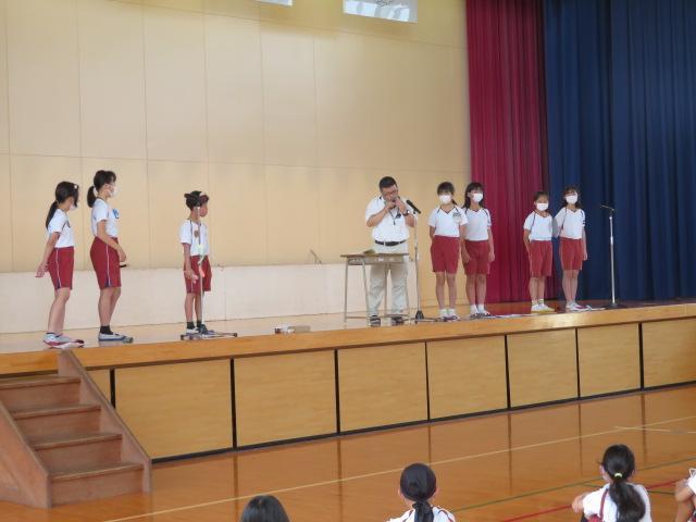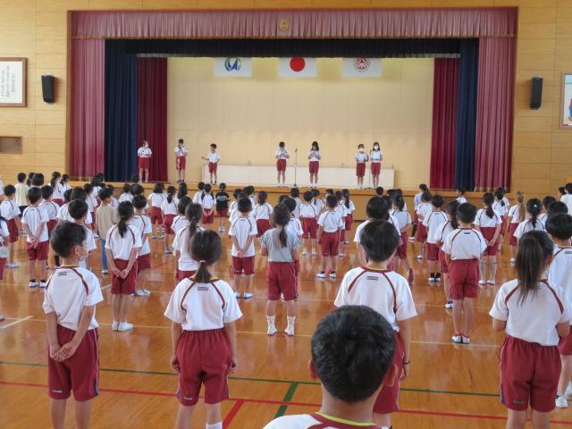 毎月1回行っている音楽集会。今月の歌は「トトロ」でした。「トトロ」の歌詞には『オカリナ』という楽器が出てきます。音楽委員会の子どもたちがオカリナとリコーダーの音色の違いを実際に吹いて教えてくれました。また、先生がオカリナで「ふるさと」という曲を演奏してくれました。優しい音色になんだか心がとても穏やかになる感じでした。そのあと全校生で歌った「トトロ」は、とても明るく楽しい気分になりました。今日もステキな歌声が響きました。次はどんな歌を練習するのでしょうか?楽しみです。