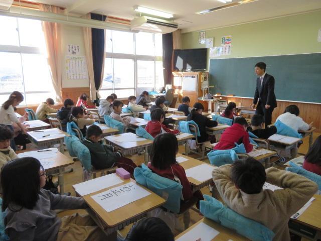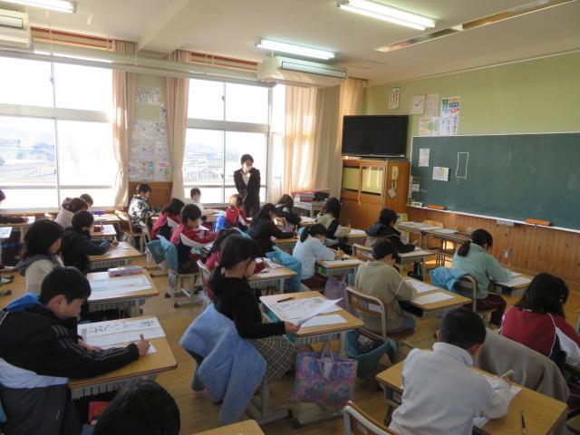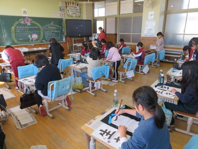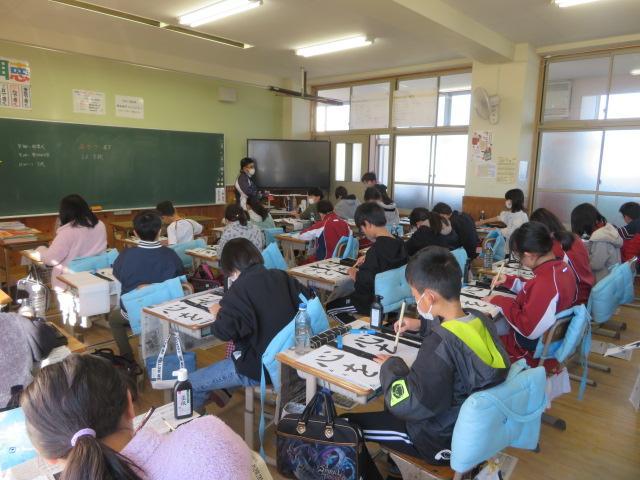 始業式の後、各教室でそれぞれ「書初め」を実施しました。1・2年生はペンで、3年生以上は毛筆での書初めです。子どもたちは心を落ち着かせて真っ白な紙に向かい、一文字一文字丁寧に心をこめてペンや筆を運んでいました。冬休みの練習の成果が発揮できたのではないでしょうか。