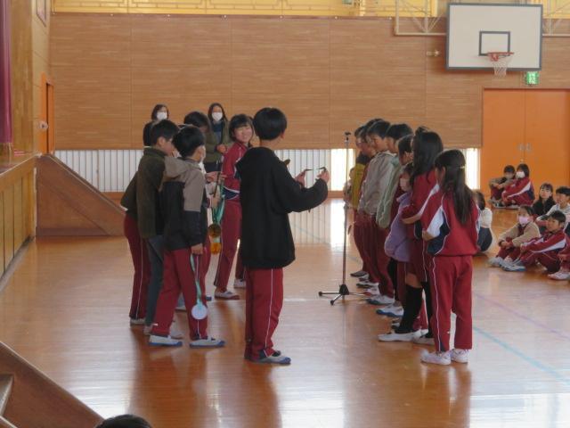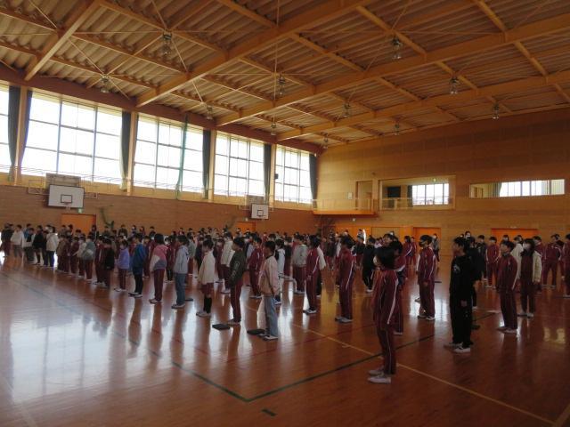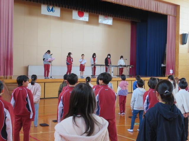 音楽集会では、最後の歌にふさわしい「ありがとう さようなら」を歌いました。この歌は、1番が「ともだち」、2番が「教室」、3番が「先生」と、通いなれた学校を卒業していく子どもが、お世話になった友だちや先生、教室に感謝と別れを告げる卒業ソングです。6年生との別れを惜しむかのように、今日の歌声はいつもよりも体育館に響いているように感じました。音楽委員会の皆さんの楽器演奏もとてもよかったです。いよいよ21日は「卒業式」です。今日は心を込めて在校生が式場の準備などを行いました。6年生にとって思い出に残る卒業式となりますように。
