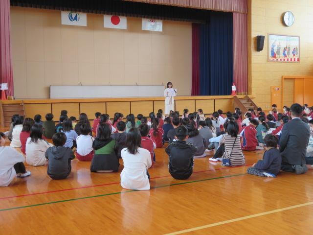 今年は、八木小学校が150歳という特別な1年です。1年間を通して150年をお祝いできればと思っています。誕生年をお祝いするためにみなさんでアイデアを出し合ってすばらしい1年にできればと思っています。伝統ある八木小学校の素晴らしい1年をみんなで作っていきましょう。」