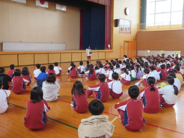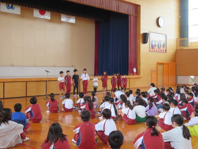 児童会運営委員より、各学年の目標や委員会からのお知らせの報告がありました。それぞれの学年で頑張ろうとしているめあてがよくわかりました。みんなで協力して目標を達成できるといいなと思います。また、各クラスの代表による意見発表も行われました。一人ひとりが学習面や生活面での目標をしっかりともって、堂々と全校生の前で発表しました。チャレンジする姿をみんなで応援していきたいなと思います。代表による発表でしたが、きっと全校生みんながそれぞれの目標を決めて、チャレンジしていくことと思います。できたかどうかの結果だけでなく、チャレンジしている過程を大切にしていきたいですね。
