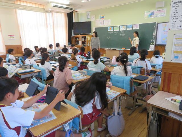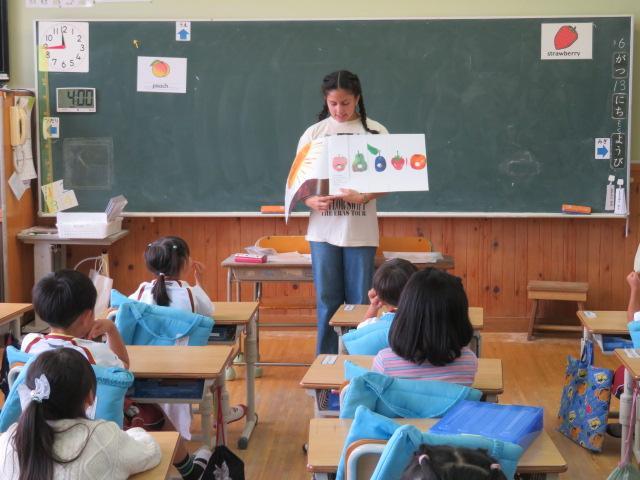 毎週木曜日は、ALT・STの先生方が、八木小学校に来ます。3・4年生は外国語活動、5・6年生は外国語の授業があります。時々、1・2年生も外国語にふれる学習をします。言葉を聞き取ったり、話したり、英語での会話を楽しんでいる様子も見られます。5・6年生になると、会話だけでなく、読んだり、書いたりの学習もあります。今日、1年生の教室では、果物の英語を話したり、「はらぺこあおむし」の絵本を英語で読んでもらったりしていました。外国の方と英語でコミュニケーションが図れると、きっとステキな時間を過ごせると思います。これからも楽しく外国語の学習に取り組めるといいですね。
