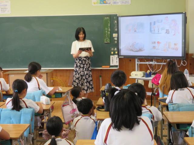 1学期の読み聞かせは、今日で終わりです。全部で10回ありました。いろいろな先生がいろいろな本を読み聞かせしました。どの絵本が一番心に残っていますか? 来週の金曜日は終業式。夏休みが始まります。夏休み用に図書室で5冊の本を借りています。夏休みもたっぷりと読書を楽しんでほしいと思います。2学期には新しい図書室がオープンします。たくさんの子どもたちが図書室を利用してくれたらいいなと思っています。