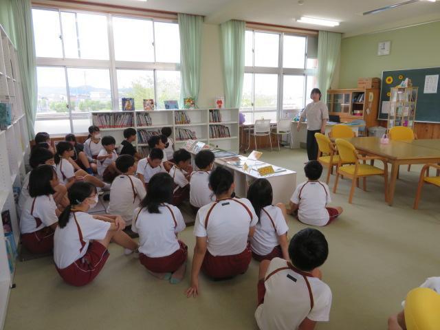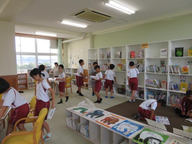 図書室をリニューアルオープンしました! 八木小学校150周年を記念して、図書室をリニューアル。これまでの特別教室棟から本館2階へと移しました。子どもたちがいつでも、少しの時間でも、図書室へ行っていろいろな本と触れ合うことができるようにと考えました。興味関心をもてる本や新しい読み物の本など、蔵書も増えています。畳スペースもあり、ゆったりとくつろぎながら読書を楽しむこともできます。今日は、新しい図書室の使い方について話を聞いてから、それぞれが読書の時間を楽しみました。初めて利用した子どもたちからは、「とってもいい」「きれい!」「ひろい!」「フレッシュの時間にも来る」と感想が聞かれました。毎日たくさんの子どもたちが図書室を訪れ、様々な本と出合い、本が大好きな子どもたちになってくれることを願っています。 子どもたちが図書だよりを持ち帰っていますので、そちらもご覧ください。