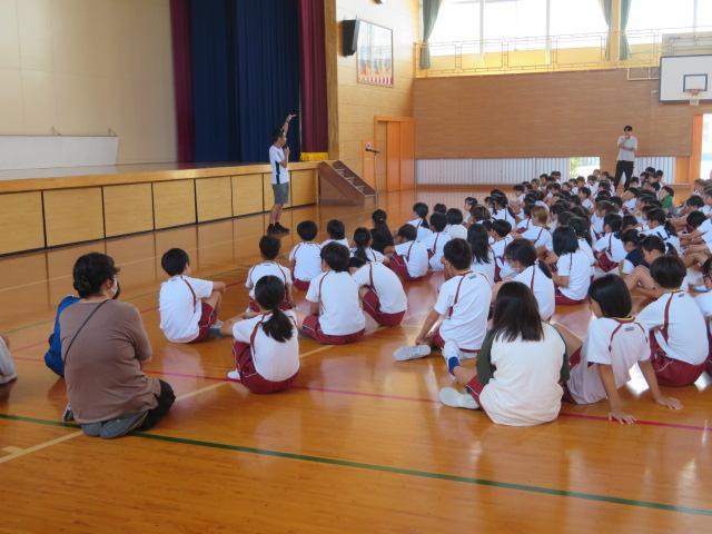 安全指導担当の先生からは、「命は1つ。自分の命をしっかり守れる行動をしよう」とお話がありました。自転車に乗るときのヘルメット、道路の歩き方、横断の仕方など車に気をつけることが命を守ることにつながりますね。また、登校班での歩き方や登校時刻(7:50~8:05)についても話がありました。それぞれの班で安全に登校できるといいですね。ご家庭でも安全な登下校について子どもたちにお話しいただければと思います。