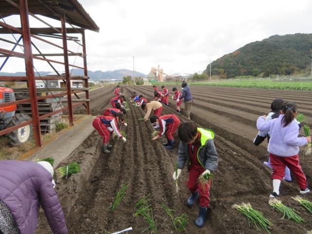 3年生が玉ねぎの苗植え体験に挑戦しました。地域の方にお世話になって、畑に植えさせていただきました。植え方を教えてもらい、畝に4列になるように、一人ひとりが頑張って作業をしていました。玉ねぎは植えただけでは大きくなりません。草を引いたり、肥料をやったり、・・・たくさん世話をしなければなりません。病気にも気をつけなければなりません。6月の収穫がとても楽しみですが、地域の方にたくさんお世話になっていることを忘れず、感謝の気持ちで過ごしたいですね。