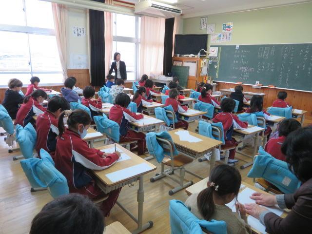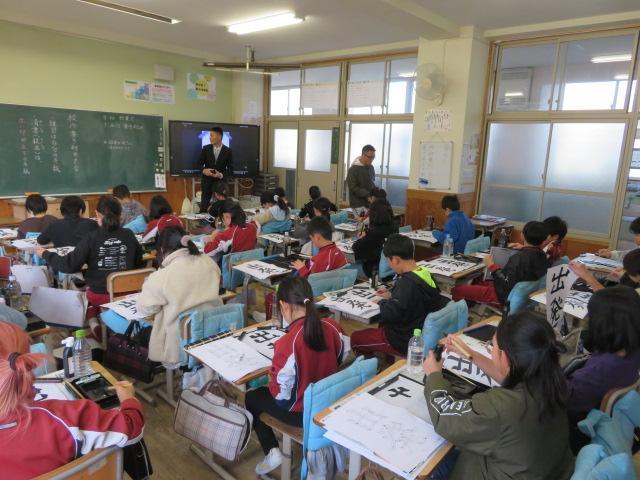 始業式の後、各教室で「書初め」に取り組みました。1・2年生はフェルトペンで、3年生以上は毛筆で、それぞれ書きました。書初めは平安時代に宮中で行われていた行事が由来とされています。その後、年の始まりに「文字がきれいに書けるようになる」「一年の抱負を定める」などの意味を込めて書初めをするようになったそうです。教室では、子どもたちは真っ白い紙や半紙を前に、心を整えて、一画一画集中して丁寧に字を書いていました。冬休みに練習した成果を発揮できたのではと思います。