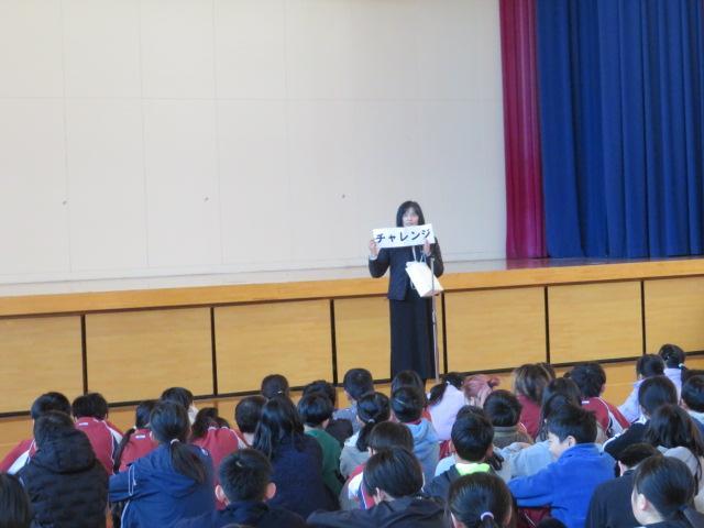 冬休みが終わり、今日から3学期がスタートしました。子どもたち一人ひとり、充実した冬休みを過ごせたことと思います。始業式では子どもたちの元気な姿を見ることができました。2025年のスタートでもある3学期。きっと子どもたちは、今年の目標、そして3学期の目標を立て、その達成に向けて取り組みをスタートしていることと思います。3学期はとても短く、学校に来る日を数えてみると「あと50日」です。きっと、あっという間にゴールがやってきます。だからこそしっかりと「チャレンジ」してほしいと思います。失敗を恐れず、チャレンジを続けることでできることも増えていき、やがて目標を達成することにつながっていきます。短い3学期ですが、子どもたちには毎日「チャレンジ」を続けて、50日後のゴールを目指してほしいと思います。保護者の皆様には、今学期もご理解ご協力をいただきますようよろしくお願いします。