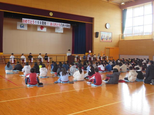 2時間目に、来年度の児童会運営委員選出のための立会演説会が体育館で行われました。立候補した4・5年生の子どもたちがそれぞれの思いや考えを発表しました。明るい学校、思いやりのある学校、元気な学校、全校生が仲の良い学校、楽しい学校、・・・など、一人ひとりが作りたい学校の姿を明確な言葉で表していました。そして、あいさつ運動をするだけでなく、自分から進んであいさつをすること、みんなが仲良くなる機会を作ることなど、自分たちが思い描くステキな学校を作るために自分はどんなことをするつもりなのかもしっかりと話していました。立候補した全員が運営委員になれるわけではありませんが、「八木小学校をいい学校にしたい」という一人ひとりの熱い思いは聴いている子どもたちの心にしっかりと響いたのではないかと思います。「こんな学校にしたい」というゴールがあれば、全校生みんなでそれに向かって頑張れると思います。4月から…ではなく、明日からでも思っていることを行動に移していけるといいですね。