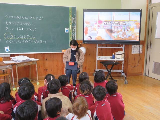 でした。今日は、今年度最後の読み聞かせでした。年間34回。どんな本と出合うことができたか、覚えているでしょうか。楽しい絵本、グッとくる絵本、考えさせられる絵本、どの絵本も人の心を動かします。心が動くとまた一つ、心が成長します。新しい学年になっても、たくさんのステキな本と出合い、「心を豊かに」してほしいと思います。