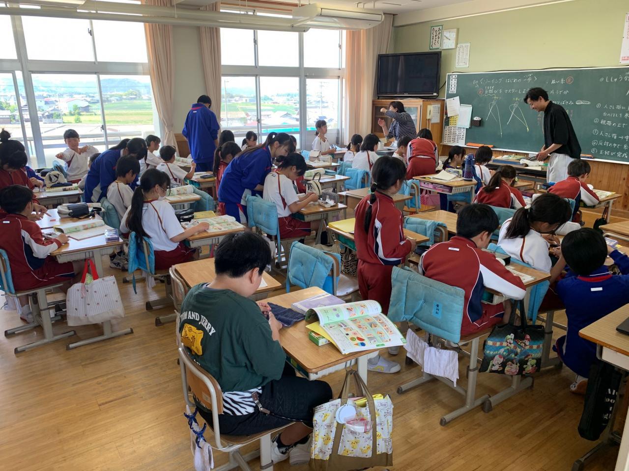今週からは、トライやる・ウィークの期間でした。八木小学校には三原中学校の2年生4名が5日間、他にも授業所が休みに日には、プラス何名かが