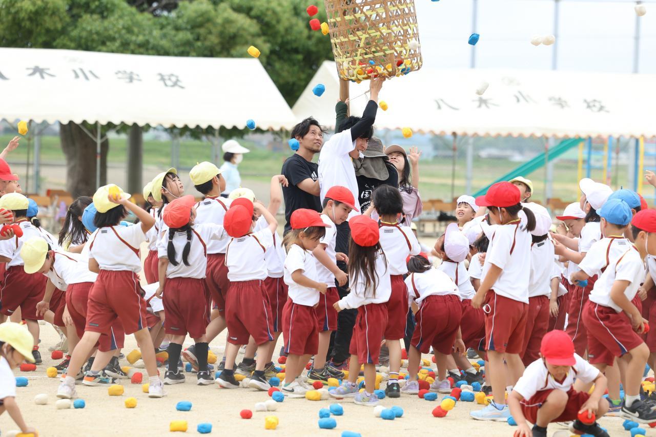 体育会の見どころは以下の通りです。かけっこやリレーで一生懸命に走る姿、自分たちでアイデアを出し合った学年競遊、1年生と6年生の親子競遊、体育委員会企画の全校競遊、チームで力を合わせる玉入れと綱引き。これらを以前紹介した赤・青・白・黄の4チームで競います。そして、競技後には各チームオリジナルの「勝利のコール」があり、声だけでなく体中で喜びを表現します。どうぞお楽しみに。