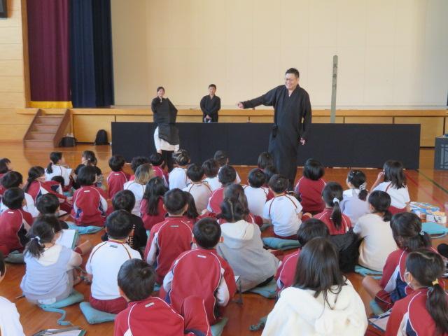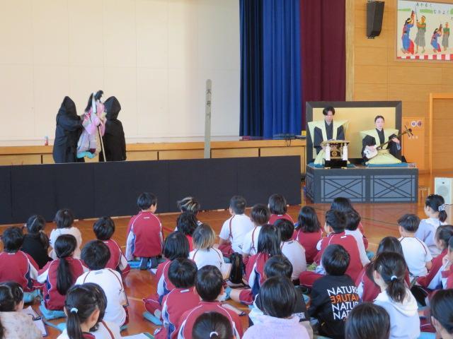 本日、2・3年生を対象に、淡路人形座から出張講演がありました。
