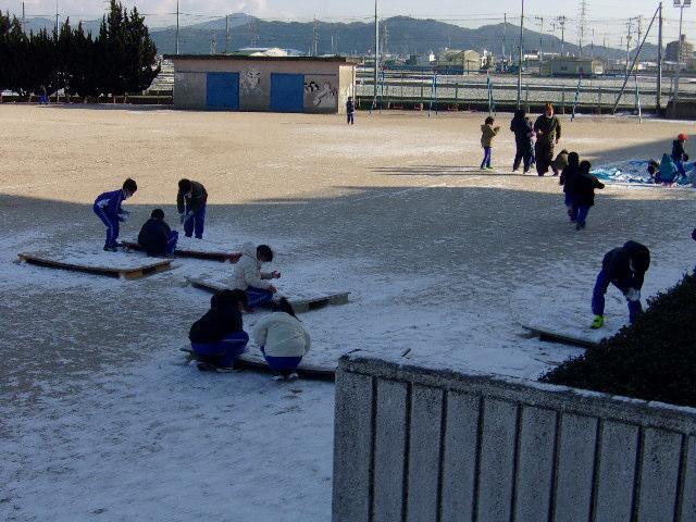 朝起きると辺りは一面真っ白。今朝は、手に雪玉を持って登校してくる子どもたちがたくさんいました。淡路島では雪が積もることは本当に少ないので、フレンドの時間も雪を集めたり、雪だるまを作ったり、手を真っ赤にしながら本当に楽しそうに遊んでいました。小さい学年では、みんなで雪遊びをする様子も見られました。また、教室ではタブレットを活用して、雪の写真を上手に使って日記を書いたりする姿もありました。本当に寒い一日でしたが、外でうれしそうに遊ぶ子どもたちを見ていると、今日だからできること今日だから感じることを大切にすることが、子どもたちの感性を育むことにつながっていくのだとあらためて感じました。