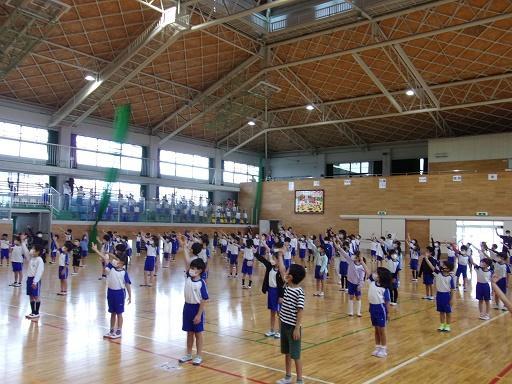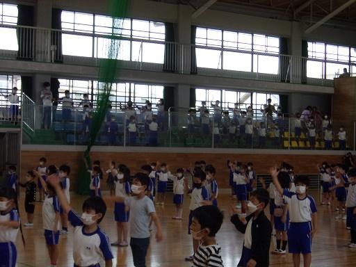 久しぶりに全校生が集まって、音楽集会「歌声のつどい」を行うことができました。春から音楽委員会が準備した動画を見て、各教室でしっかりと練習してきたことを体育館で発表しました。体育館フロアーには低学年、ギャラリーには高学年が間隔をとって静かに集まりました。練習してきた歌は、手話歌の「にじ」です。手話を覚えるのは大変だったと思うのですが、曲に合わせて気持ちを込めて体をしっかりと動かし、心の声で歌い、とてもすてきな歌声のつどいになりました。コロナ禍のため集まって合唱ができない日々が続いていましたが、声に出して歌えなくてもみんなで音楽を楽しむことはできるのだと感じました。音楽委員会の子どもたちも舞台上でしっかりとお手本を示していました。次回の歌声のつどいがとても楽しみになりました。