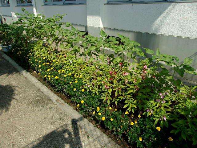 学校では、様々な学年やクラスで育てている植物が写真のように大きく成長しています。花が咲き、実がなり、毎日少しずつ変化しています。もし時間があるようでしたら、観察しに来てくださいね。
