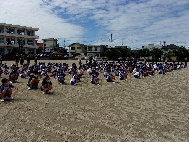 今日は、火災想定の避難訓練を実施しました。授業中に非常ベルが鳴り、避難指示の放送後、運動場へと避難しました。先生の指示に従って、上手に運動場まで避難することができました。災害はいつ発生するか分かりません。しっかりと訓練に取り組むことで、いざというときに自分の命を守ることができます。どんなときも自分でしっかりと考えて行動できるように繰り返し学習していくことが大切だと考えています。