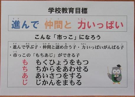 今日も感染対策のため、着任式や始業式は運動場で行いました。始業式では、市小学校が「楽しい学校」になるように、みんなで頑張ってほしい4つのことについて話しました。1つめは「目標をもつ」2つめは「力を合わせる」3つめは「あいさつをする」4つめは「時間を守る」です。それぞれの一文字目をつなげて「もちあじ」ができる市っこになろうと伝えています。この4つのことができる市っこになることで、みんなが「明日も早く学校に行きたいと思える楽しい学校」に近づくことができるのではないかと思います。