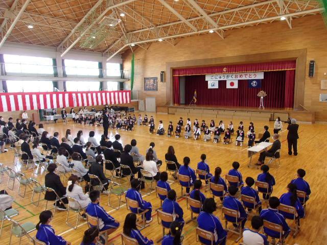 今日は入学式。1年生43名が市っこの仲間入りをしました。6年生と手をつないで入場し、ちょっぴり緊張した様子で式に臨んだ子どもたちですが、しっかりとあいさつをしたり、返事をしたりすることができました。式への参加は、会場に5・6年生、他の学年は教室でオンラインという方法をとりました。2年生から6年生までの子どもたちも教職員も1年生の入学を心待ちにしていました。1年生には、素敵な市っこになるために「あいさつ」を元気よくしようと話しました。また、6年生の代表が市小学校はとても楽しい学校で、わからないことはなんでもお兄さんやお姉さんに聞いてくださいと歓迎のあいさつをしました。明日からは登校班で歩いて学校へきます。交通ルールを守って安全に登校してほしいと思います。