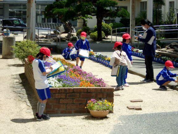 1年生は、校内で見つけたものをスケッチしていました。花や昆虫を楽しそうに描いていました。