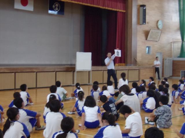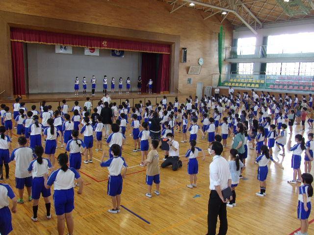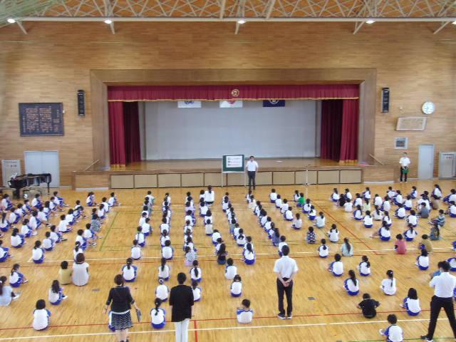 今日は、1学期の終業式を行いました。終業式では、子どもたちに1学期のふりかえりをしてほしいこと、そのために「あゆみ」をしっかり見て、おうちの人と話をしてほしいと話しました。ご家庭で「あゆみ」を話題として、1学期の子どもたちのがんばりを話す時間をとっていただければと思います。終業式の後、夏休みの生活について、担当から「火遊び」「水遊び」「車」「不審者」に注意し、命を大切に42日間、元気に過ごしてほしいとの話をしました。そのあとは歌声の集いです。「空にジャンプ!」を全校生で歌いました。歌声の集いでは、1年生から6年生までが体を動かしながら毎回楽しそうに歌っています。、市っこのよさがたくさん見られる集会だと思っています。