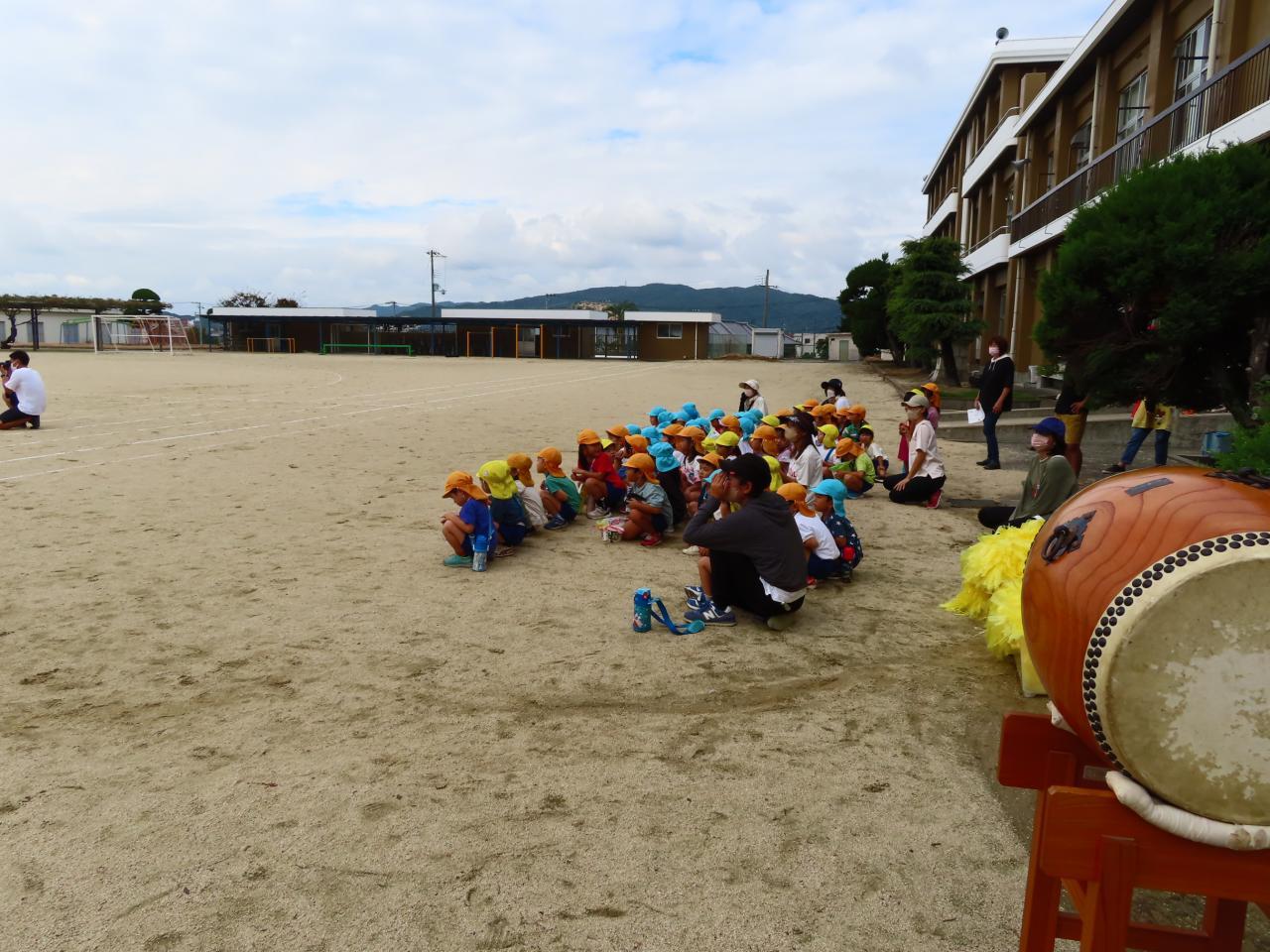 保育所のお友だちも見にきてくれました。本番さながらの白熱した演技がくりひろげられました。 そして午後、職員と6年生が一緒に予行の反省を行いました。6年生は、職員室と教室に分かれ、教室のメンバーはzoomで参加しました。その反省を受けて、6年生も本番に向けて再度、修正点を話し合い残り2日の練習に臨みました。
