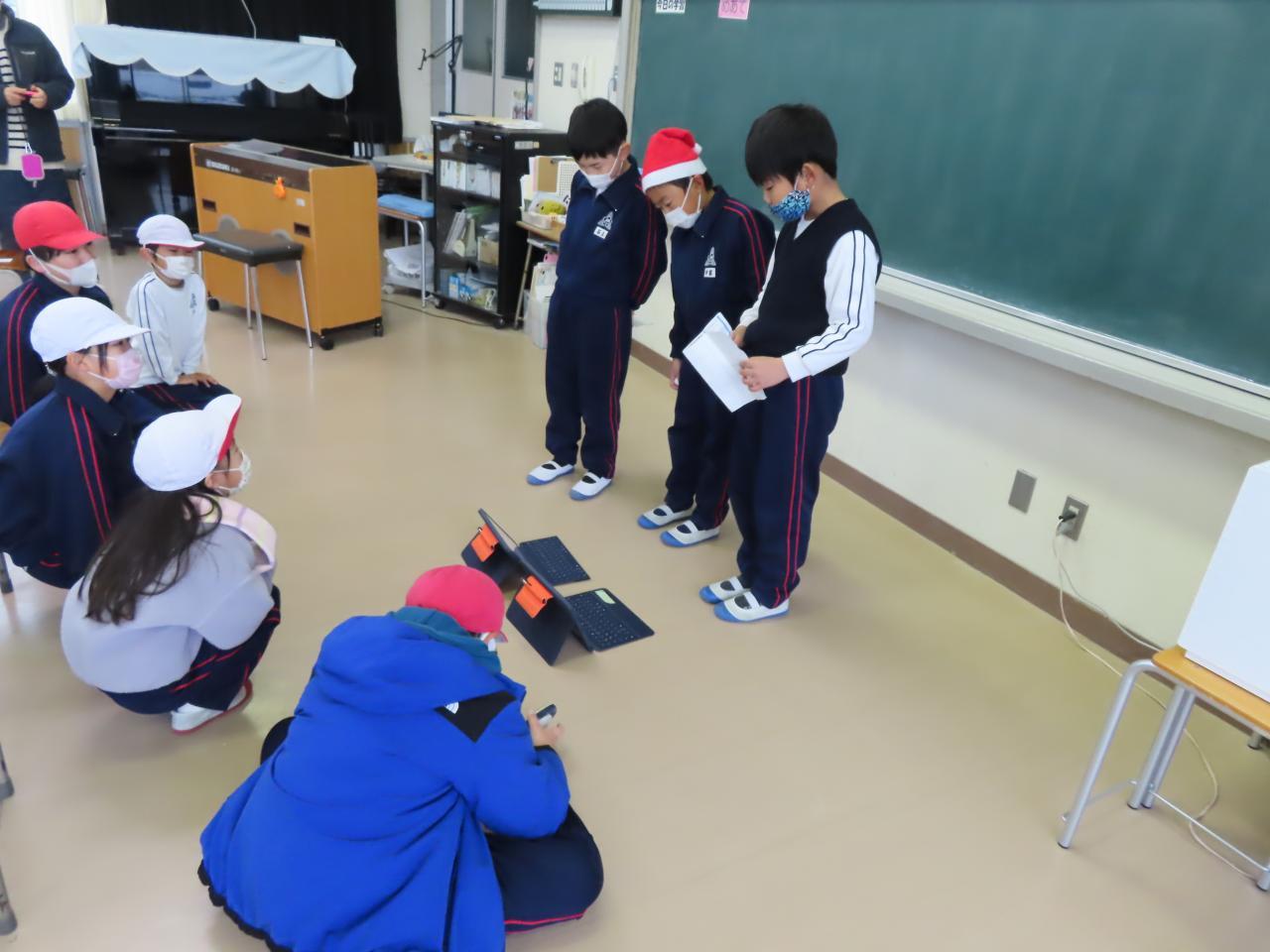 3年生が中心になってクリスマスのお楽しみ会を企画してくれました。体育館ではドッチボール、音楽室ではクイズなどそれぞれお楽しみコーナーを作ってくれました。3年生が各コーナーの担当に分かれて、わかりやすくゲーム説明をして進行してくれました。全校生が縦割り班に分かれてゲーム等に挑戦していきました。低学年から高学年まで、みんな楽しい時間を過ごしました。