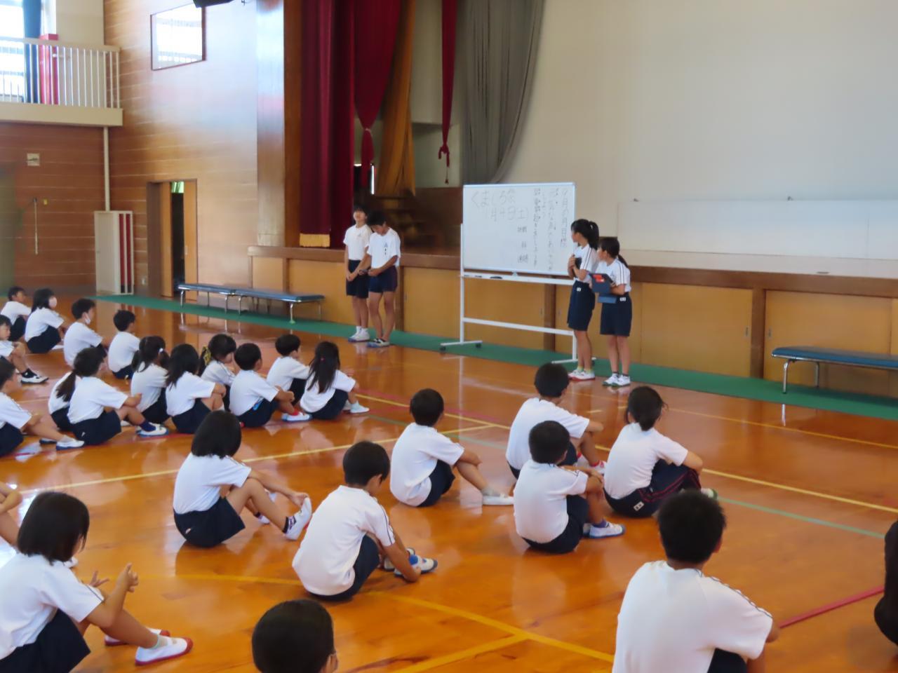 6年生が全校生に向けてテーマとキャラクターを発表しました。