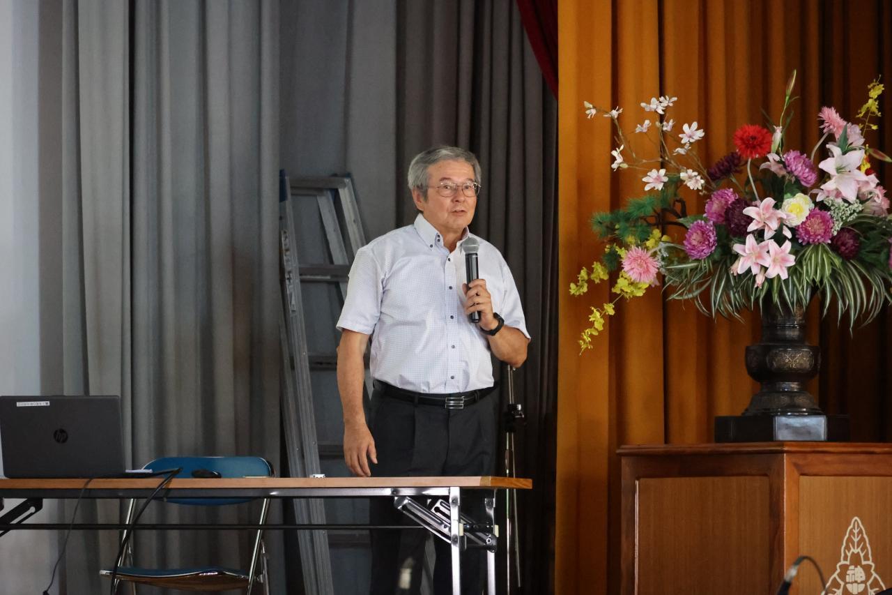 学校長挨拶、そしてPTA会長、上原直樹自治会長にご挨拶をいただき吉田文洋先生の「神代小のあゆみ」についての講演、エイリアンズのミニライブと続きました。