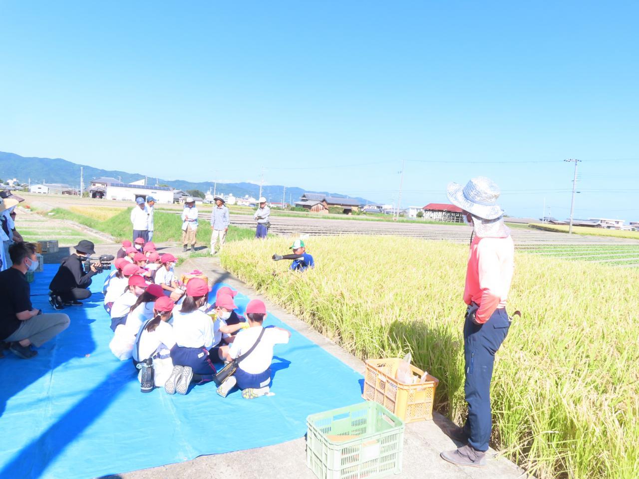 老人会の方にお世話になり今年も稲刈り体験をさせていただきました。家で稲刈りのお手伝いをしていて上手に鎌を使う児童もいました。老人会の皆様 ありがとうございました。