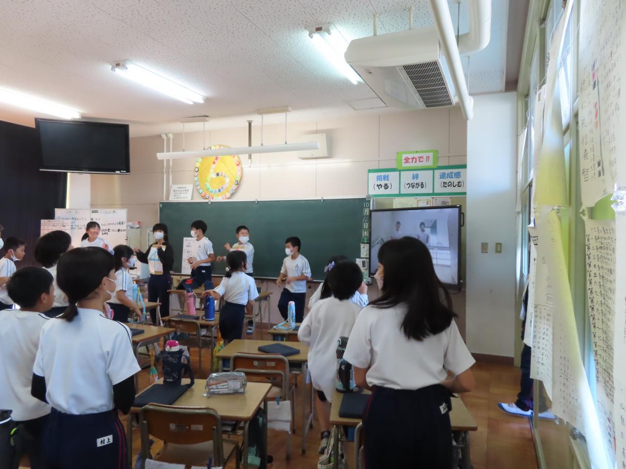 班に分かれて応援合戦の練習が始まりました。6年生がリーダーとなって進めています。今週は5年生が自然学校中ですが、来週にはまた全校生そろっての練習が続きます。体調管理に気をつけて生活しましょう。