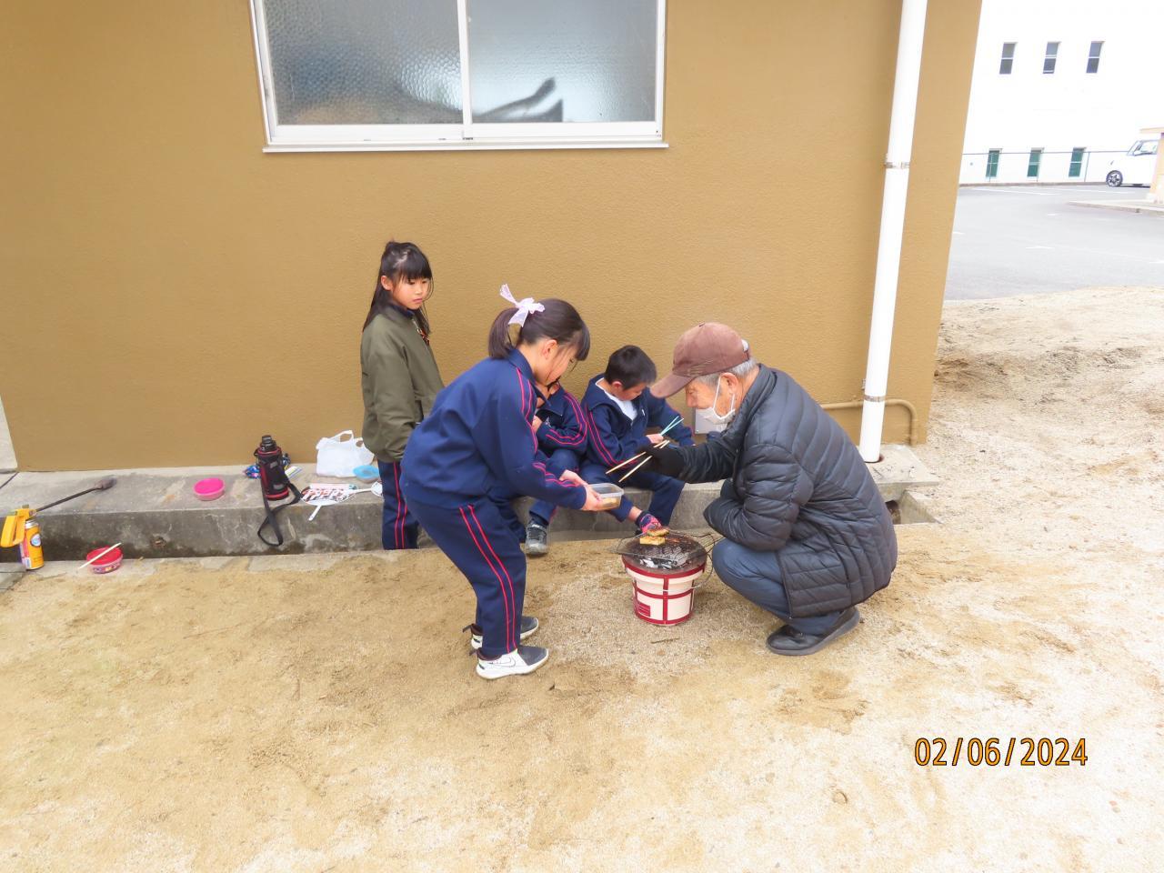 2月6日 3年生 社会科「昔の暮らし」七輪でおもち焼き