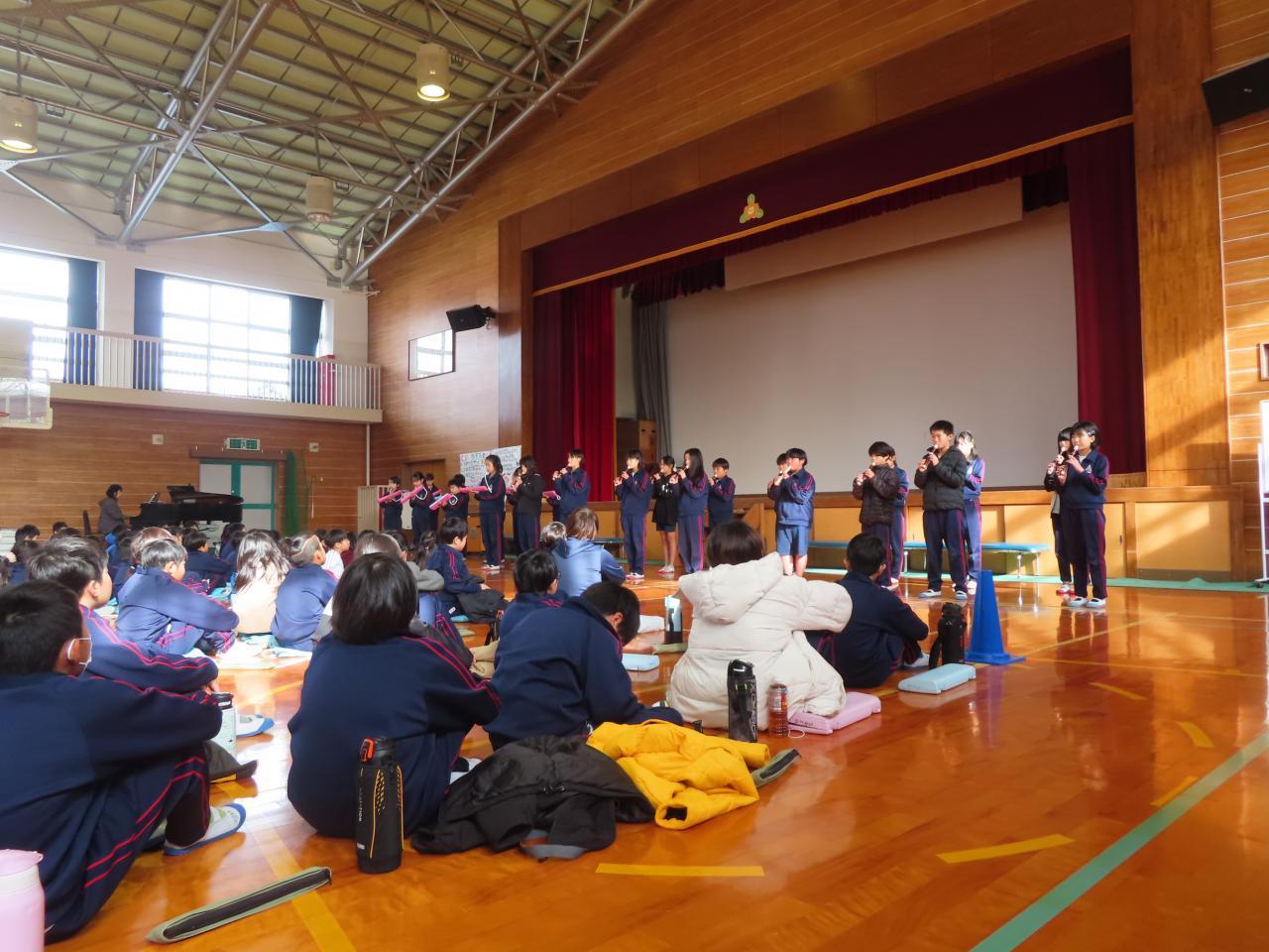 今年の音楽会も、各学年練習の成果を発揮してとても素晴らしいハーモニーを聞かせてくれました。学年が進むにつれて、曲の難易度も上がってきます。発達段階に応じた趣向を凝らした発表でした。合唱、合奏とも全校生、聞き入っていました。今年は神代保育所の年長のお友だちも来てくれました。約1時間熱心に聞いていました。発表はもちろんですが、聞く側の態度も良かったくましろ音楽会でした。