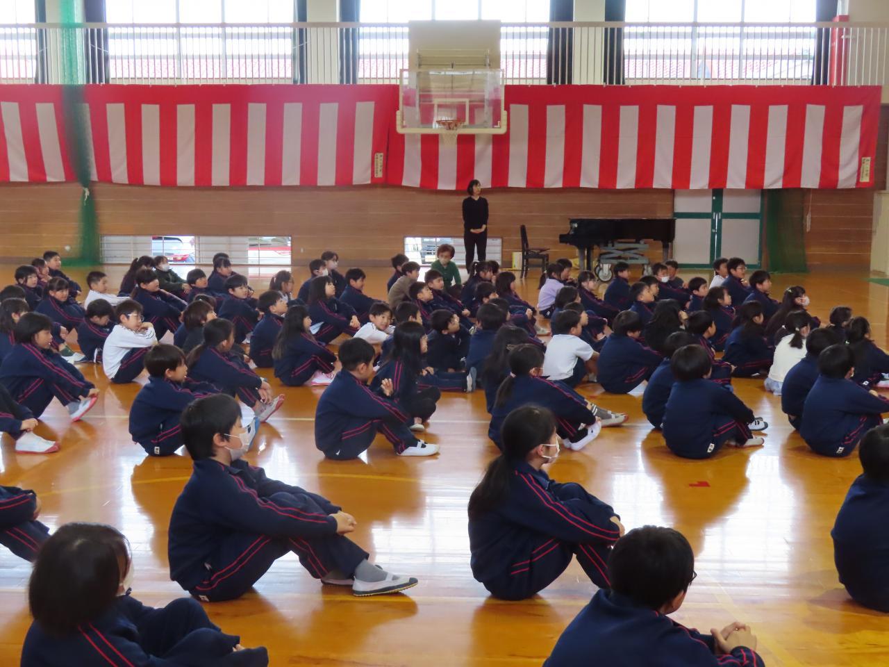 地域の方々、保護者の皆様が見守る中、無事卒業式が終わりました。小学校時代は、1年から6年まで成長が著しい時期です。五感が研ぎ澄まされる時期でもあると思います。学校は子どもたちの可能性を拡大していく場だと思います。国語や算数等の学習、芸術鑑賞会、夢プロジェクトでのアスリートの講演などを通して、広い視野をもち、将来なりたい自分を見つけていってほしいと思います。体育館に子どもたちの歌声が響き渡りました。