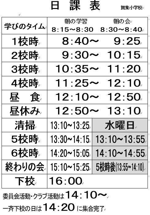 ※ 委員会・クラブ活動のある日は、対象学年のみ、下校時刻が変わります。配布物の日課表をご確認ください。