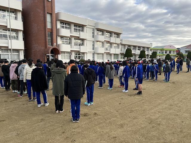 全校生が運動場に集まり、校長先生から防災の話しを聞き、黙祷、そして「幸せ運べるように」を全校生で歌いました。「幸せ運べるように」は音楽の時間にも練習してきました。