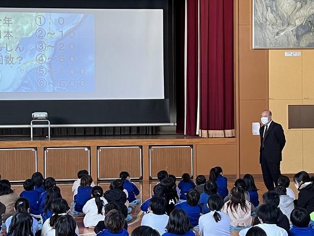 3時間目は1年~3年生が中田校長先生から防災授業。