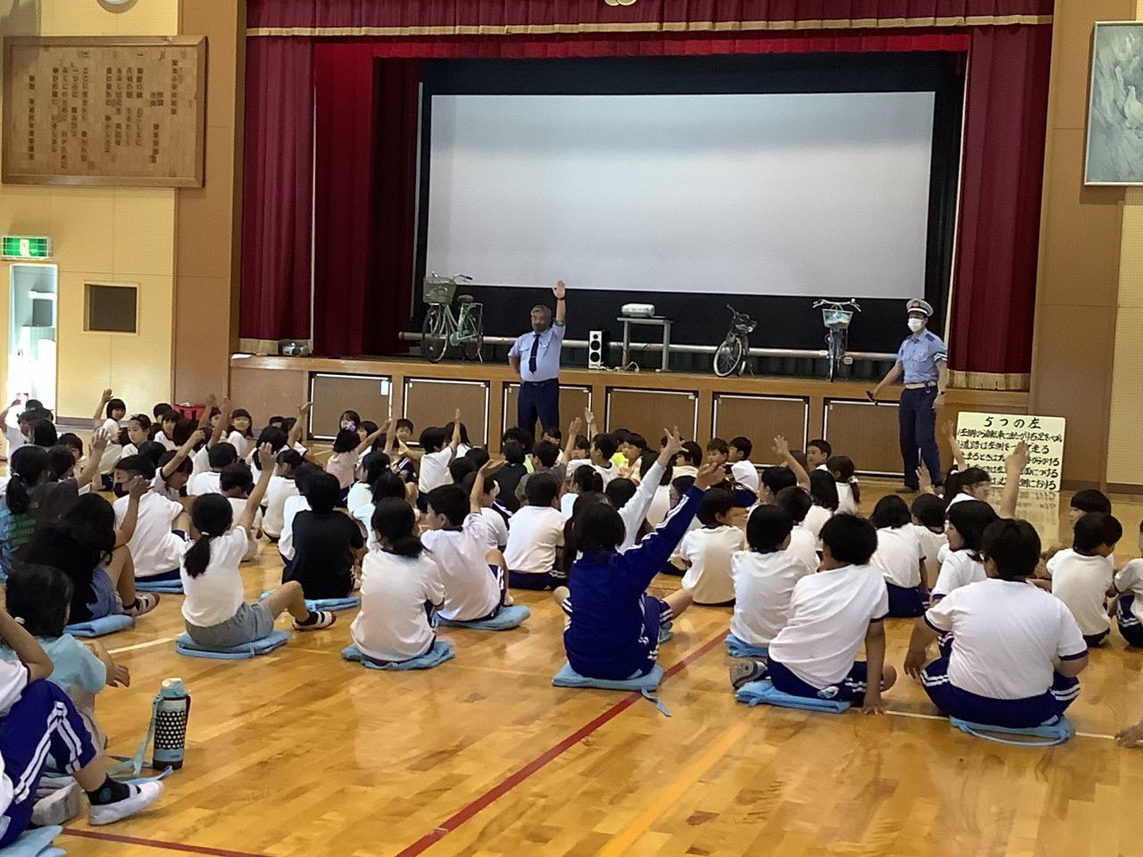 南あわじ警察署の方々に来ていただき、全校児童を対象に交通安全教室を実施しました。
