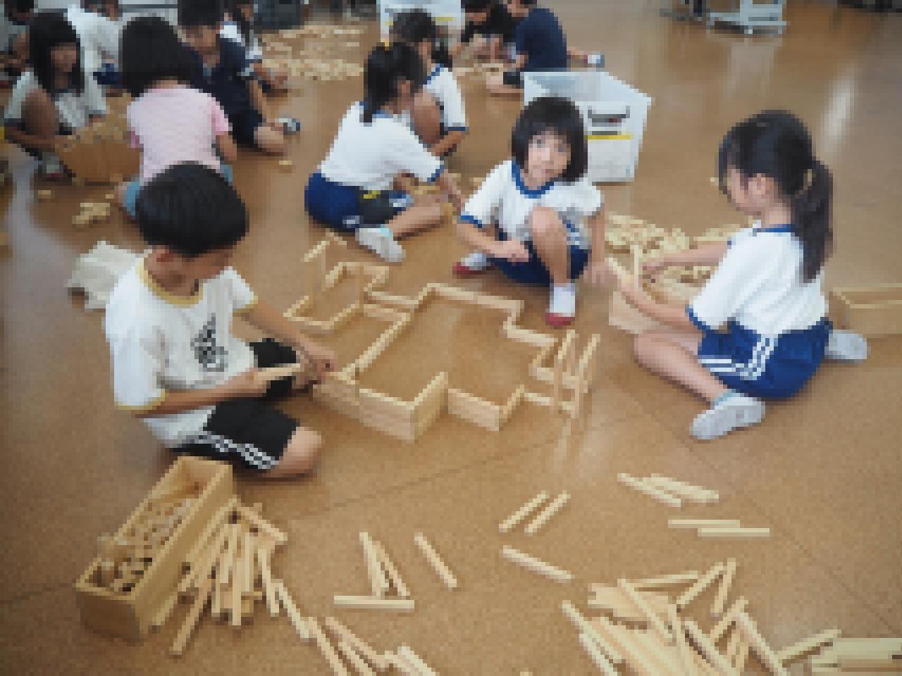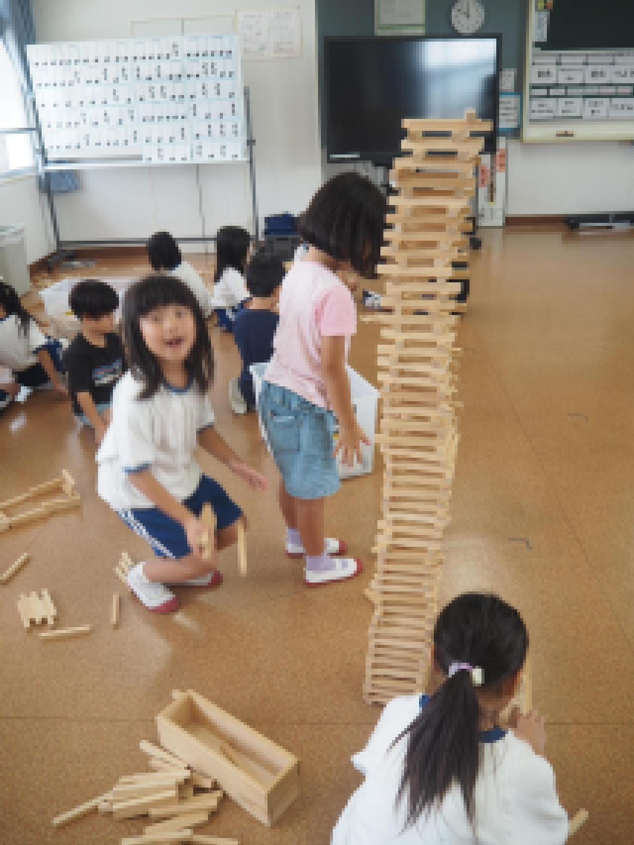 今日は1年生が木のおもちゃを使ってたくさん遊びました。