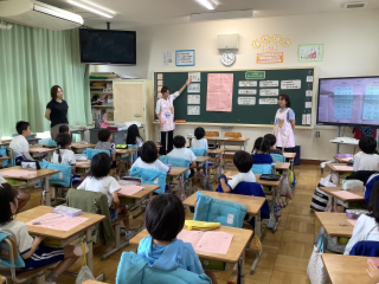 市役所の栄養士さんお二人に来ていただき、食育にチャレンジしています。2年生は明日から2週間、目標に向かってがんばりますので、お家でのご協力をよろしくお願いいたします。