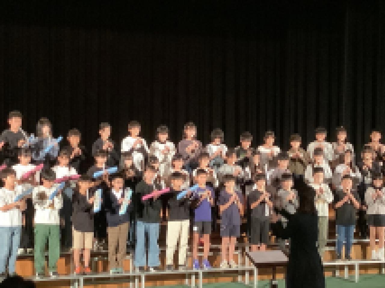 賀集小学校6年生は、神代小学校、志知小学校の6年生と合同で『コンドルは飛んで行く』をリコーダーとピアニカで演奏しました。